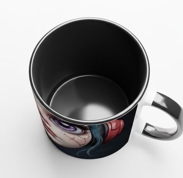 Illustrated mugs inspired by the Inkeddollai universe.